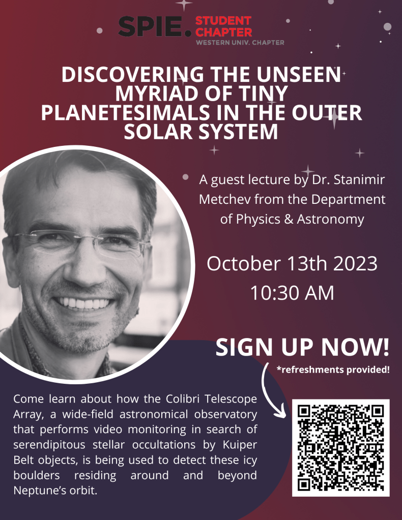 Over the past year, the UWO SPIE Student Chapter has run lab tours, networking events, guest speakers, and performed outreach at Science Rendezvous!
